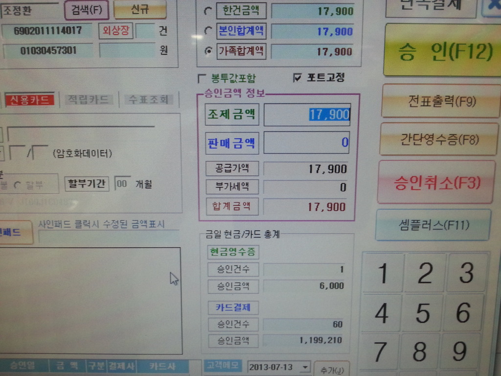 결제내역이 PM2000에 자동 저장되어 과세및 비과세 분류통계가 됩니다.
