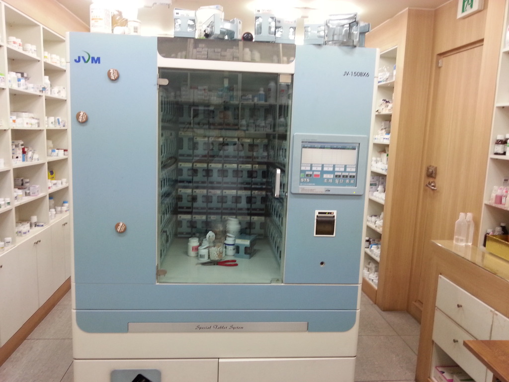 JVM의 150개 카세트의 자동조제기입니다. 그 뒤에 옛날에 썼던 90포짜리 반자동기계가 있어 혼용합니다.