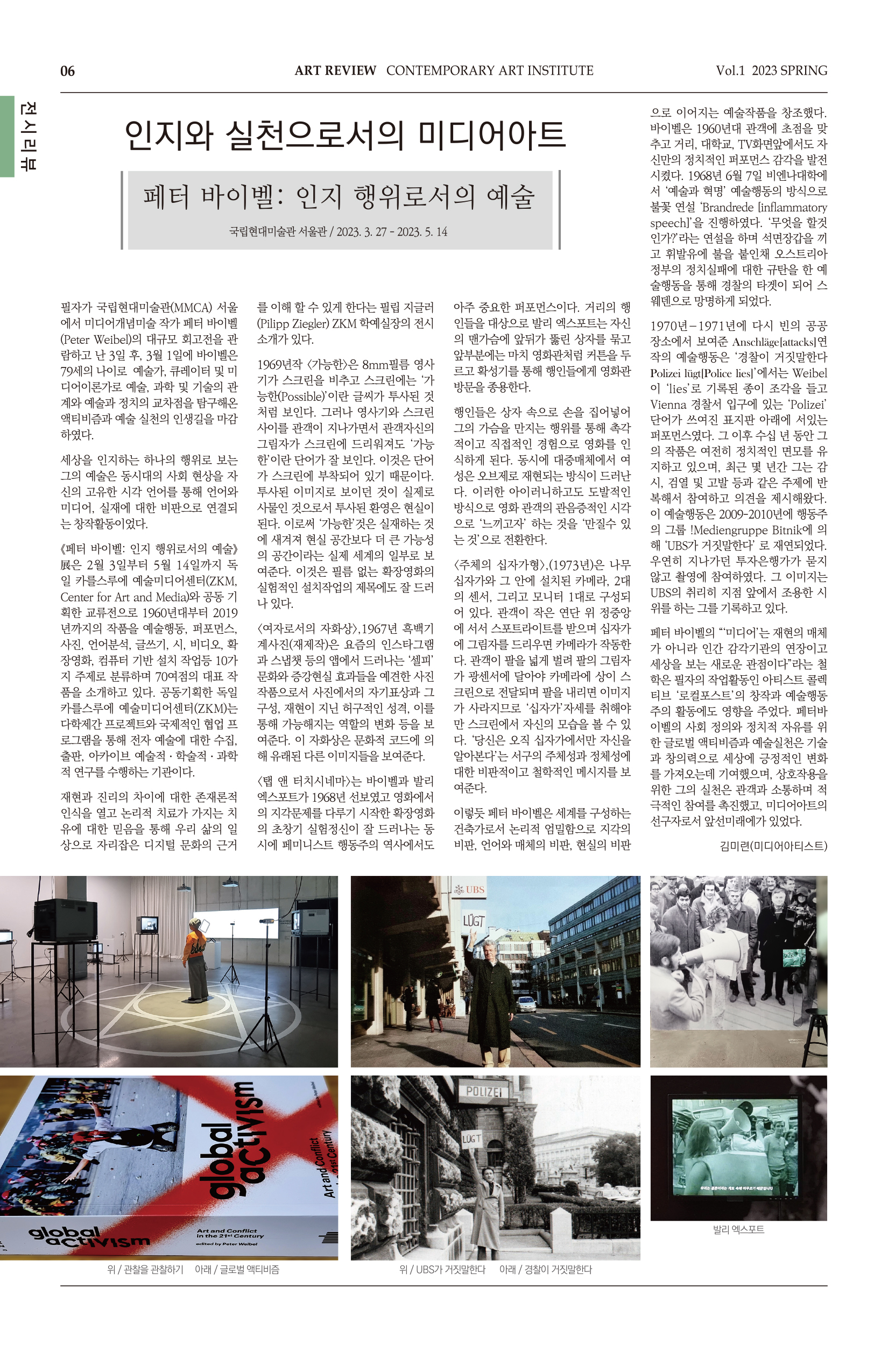 [전시리뷰]페터 바이벨: 인지 행위로서의 예술_김미련 작성자프로다|작성시간23.04.21|조회수110 목록 댓글 0 글자크기 작게가 글자크기 크게가 페터 바이벨: 인지 행위으로서의 예술 전시리뷰_김미련(미디어아티스트) 다음검색 현재 게시글 추가 기능 열기 북마크 공유하기 신고 센터로 신고 댓글 댓글 0 댓글쓰기 답글쓰기 댓글 리스트