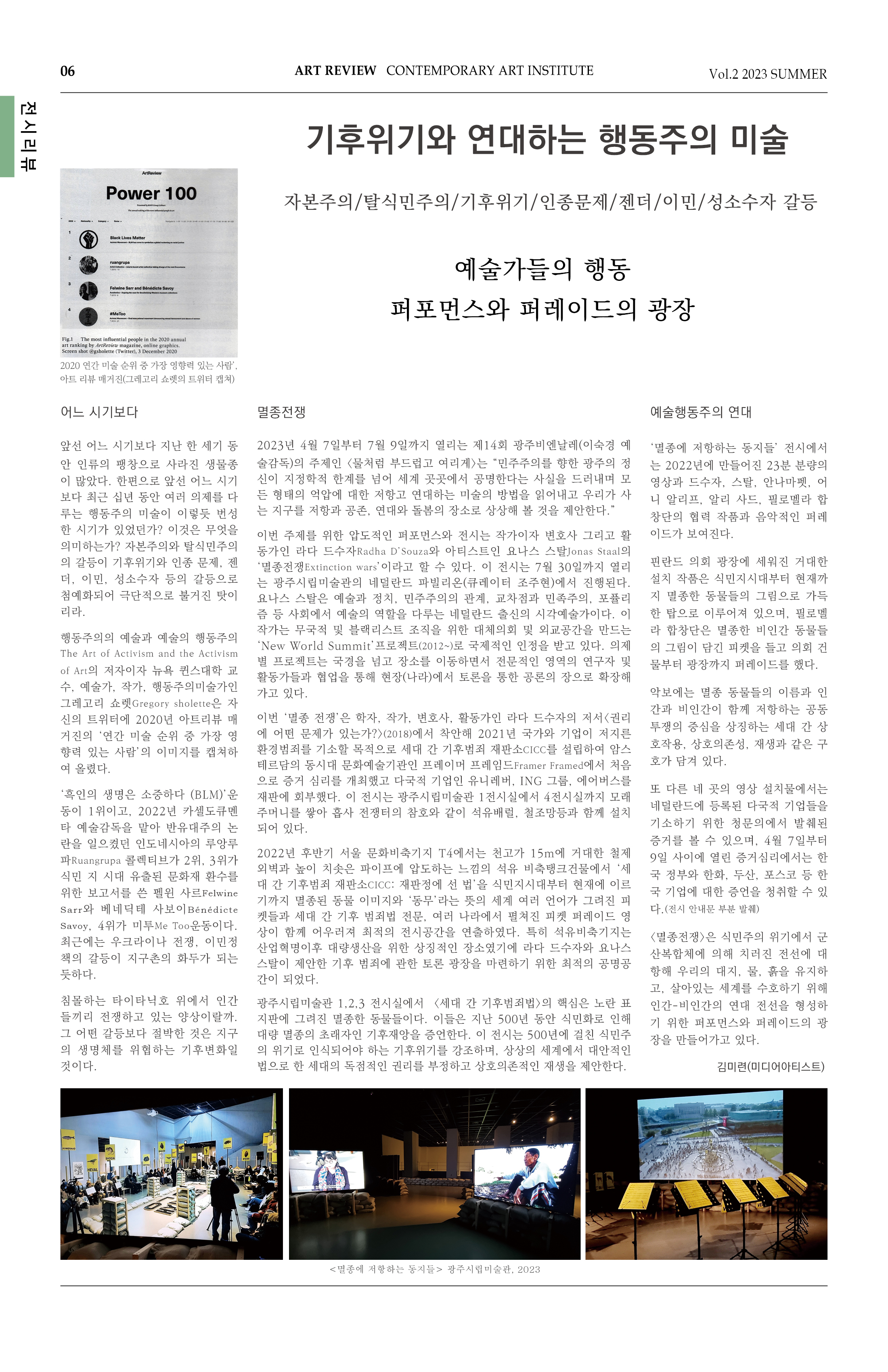 [전시리뷰][arcai2]06기후위기와 연대하는 행동주의 미술_김미련 작성자연구소|작성시간23.07.28|조회수96 목록 댓글 0 글자크기 작게가 글자크기 크게가 ◆미디어 아티스트 김미련의 글입니다.이 글의 저작권은 김미련, 현대미술연구소, 아트리뷰카이, 아트스페이스펄에 있습니다. 다음검색 현재 게시글 추가 기능 열기 북마크 공유하기 신고 센터로 신고 댓글 댓글 0 댓글쓰기 답글쓰기 댓글 리스트