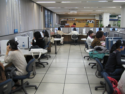멀티미디어실에서 영화를 감상중인 여대생들..