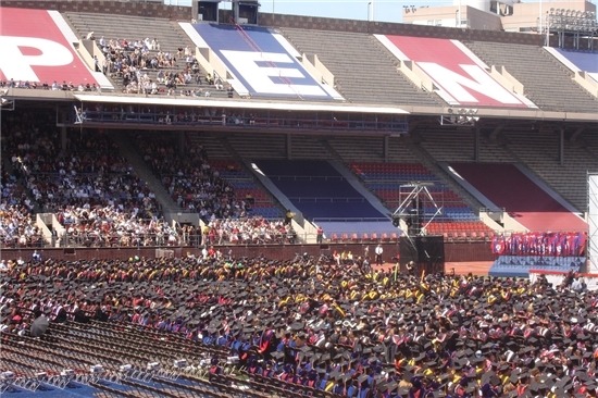 유펜 축구경기장에서의 졸업식