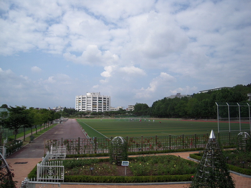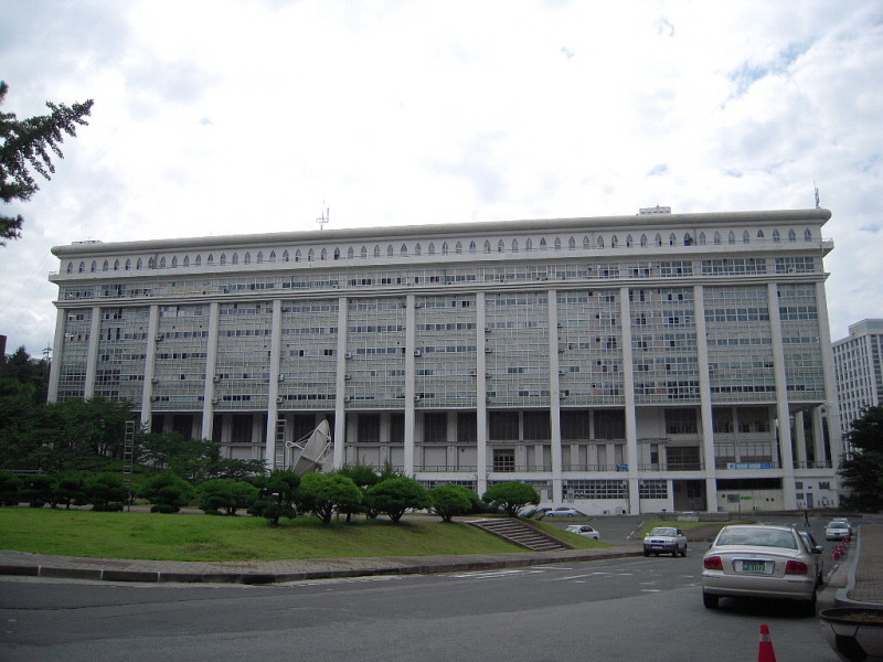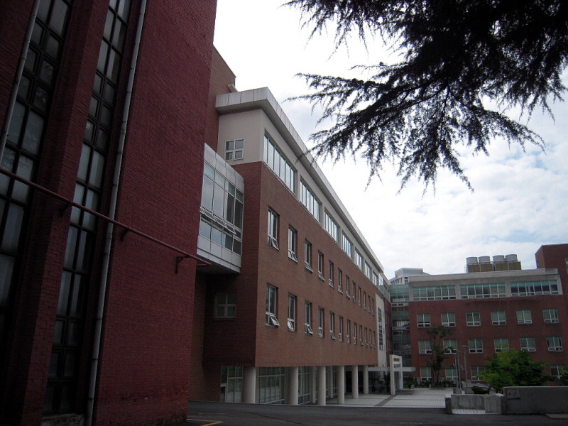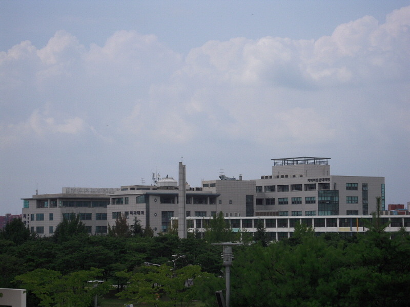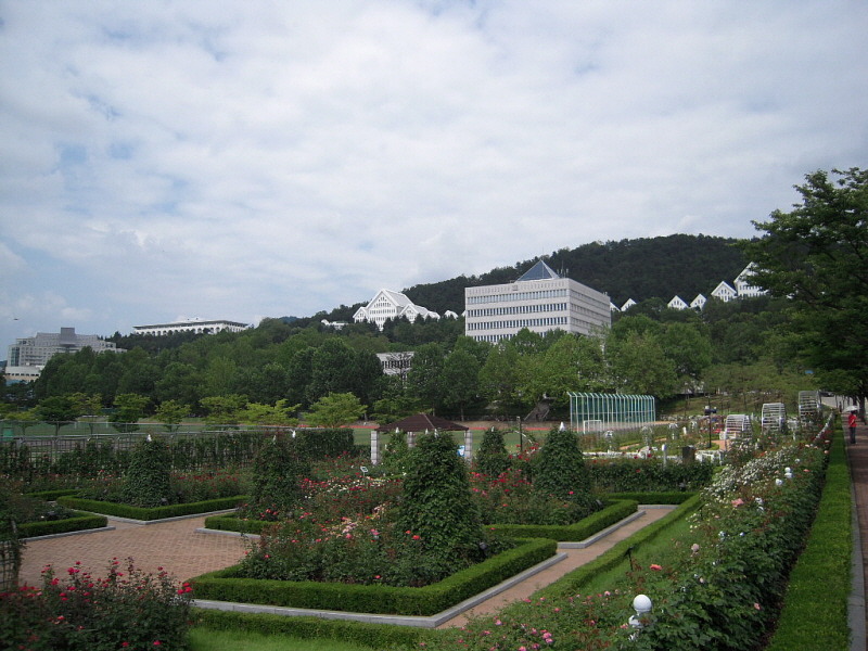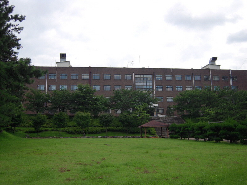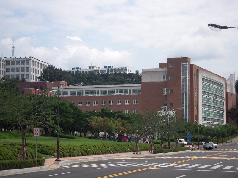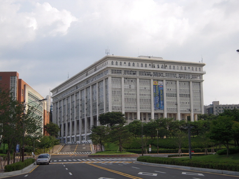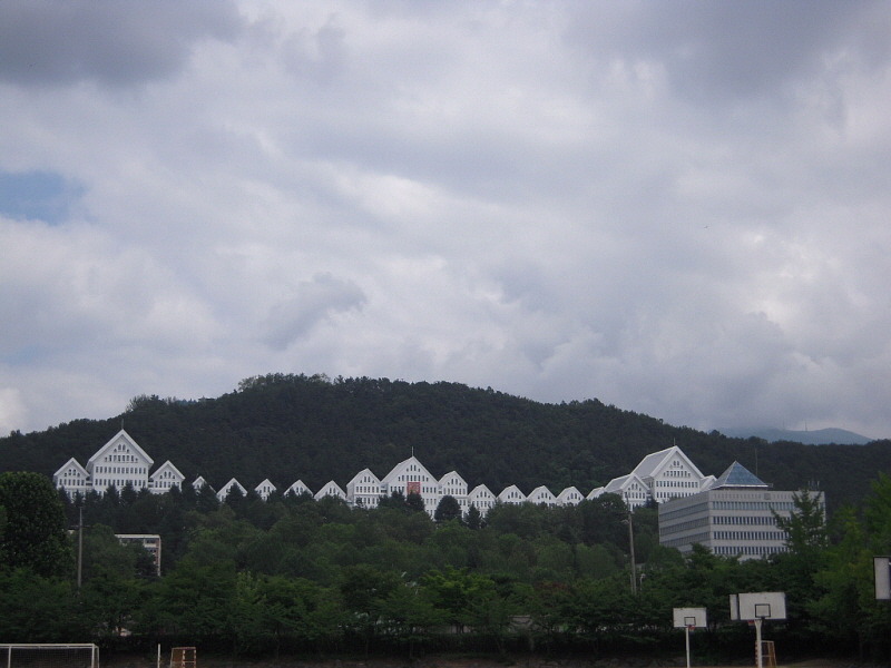 산기슭에 위치한 본관 아래로 중앙도서관이 살짝 보인다