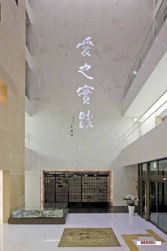 애지실천(愛之實踐). ‘사랑의 실천’이라는 한양대학교의 건학이념이 새겨진 이곳은 학교를 대표하는 대학 본관건물로서 여러 의미가 담긴 복합적 공간이다.