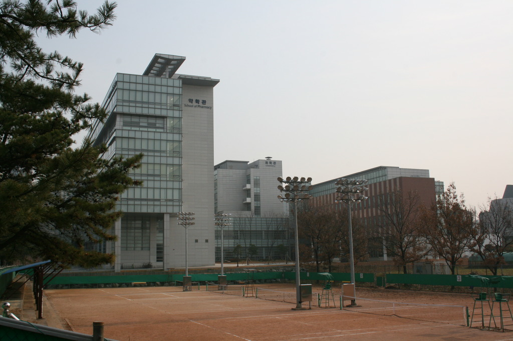 의학관의 반대쪽에는 테니스장과 약학관이 있습니다.