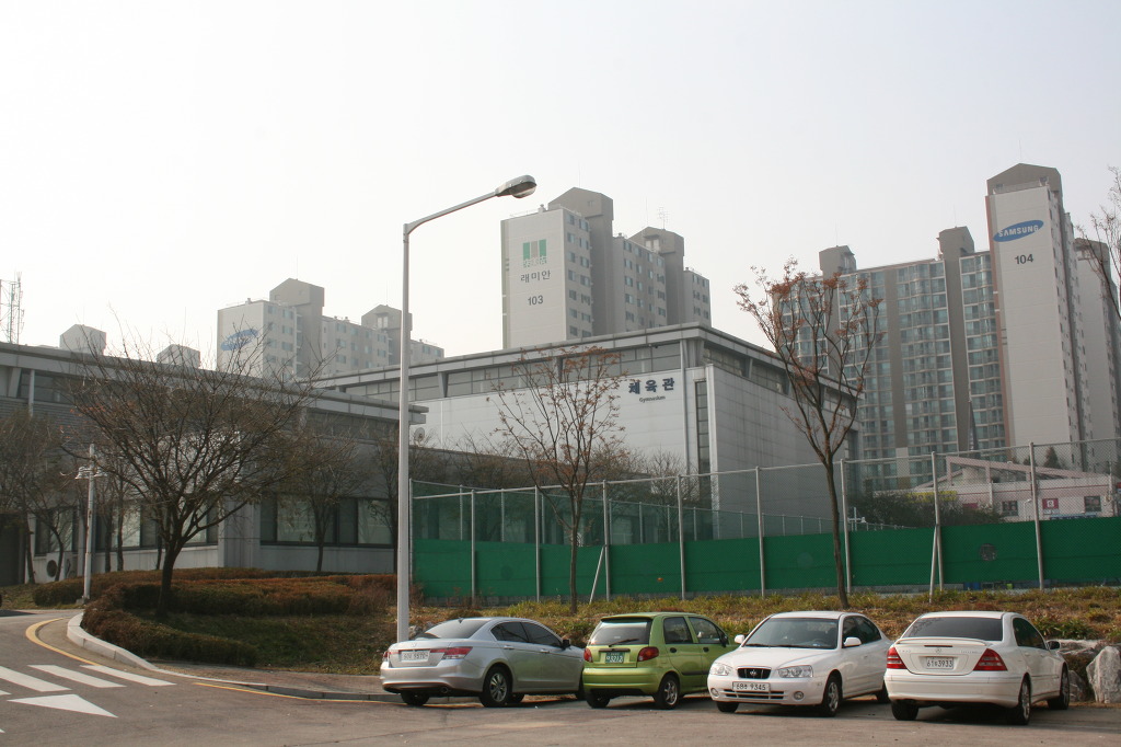 체육관입니다. 뒤의 래미안 아파트의 삼성이 뭔가 든든해 보이네요.