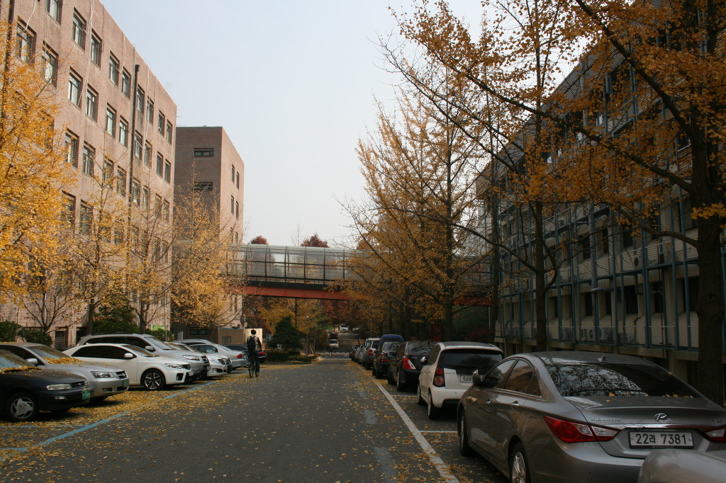 제1공학관과 제2공학관 사이의 길입니다. 구름다리로 연결되어 있고 길이 참 예쁩니다.