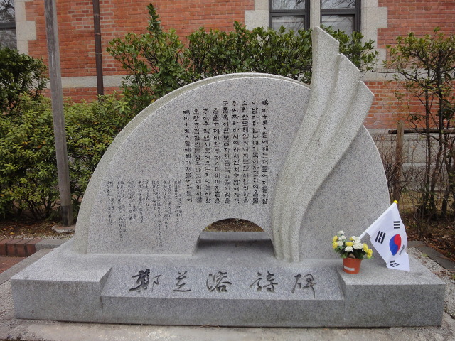 정지용 시인 시비. 윤동주 시인 시비 오른편에 있다.