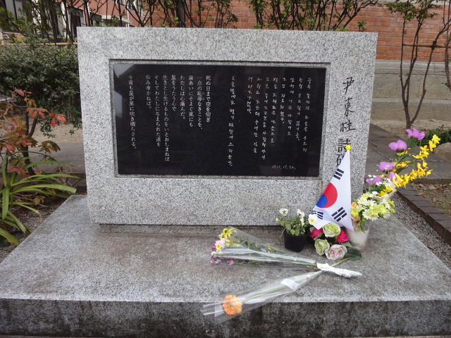 윤동주 시인 시비. 캠퍼스 구내에 있다.