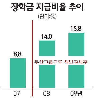 중앙대학교가 2008년에 두산그룹으로 재단이 교체된지 이제 3년째