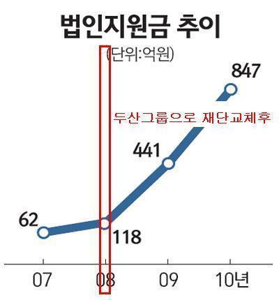 작년에 두산그룹이 중앙대에 투자한 돈만 850억 가까이 됩니다.