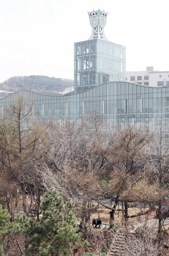 < 중앙대학교의 상징 청룡 과 너머로 보이는 신중앙도서관 >