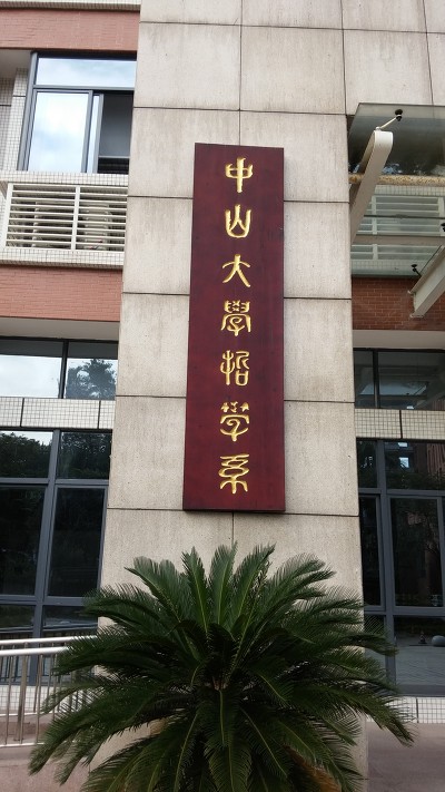 중산대학교 본관건물. 생각보다 대학교 본관 건물이 그리 크지는 않더라. 본관앞에는 이렇게 중산대학교 마크와 교훈이 적힌 간판들이 놓여있었음.