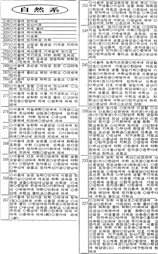*기타 여기에 빠져있는 의대/치대/한의대는 저거보다 더 낮았거나 그냥 자료에서 누락됐을거다. 둘중 하나겠지.