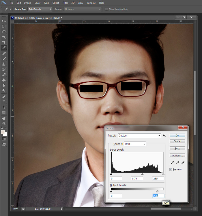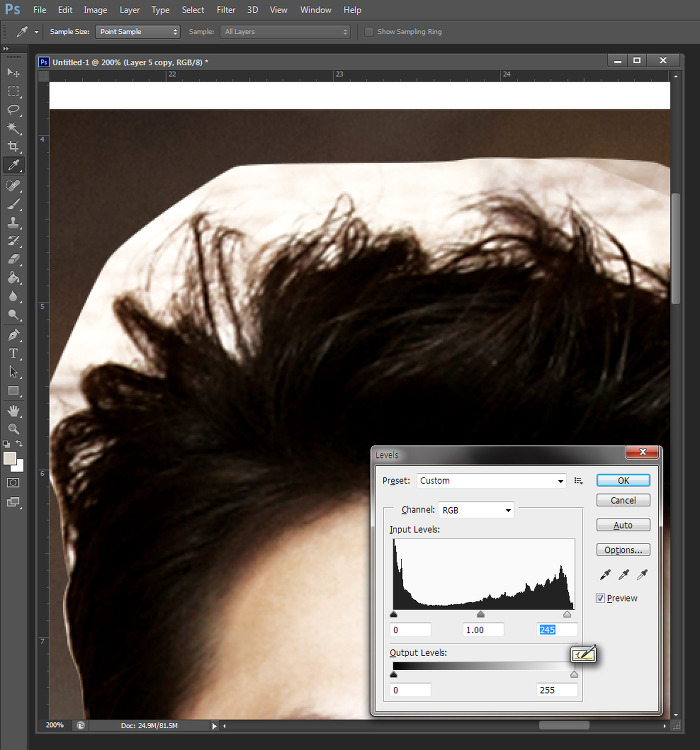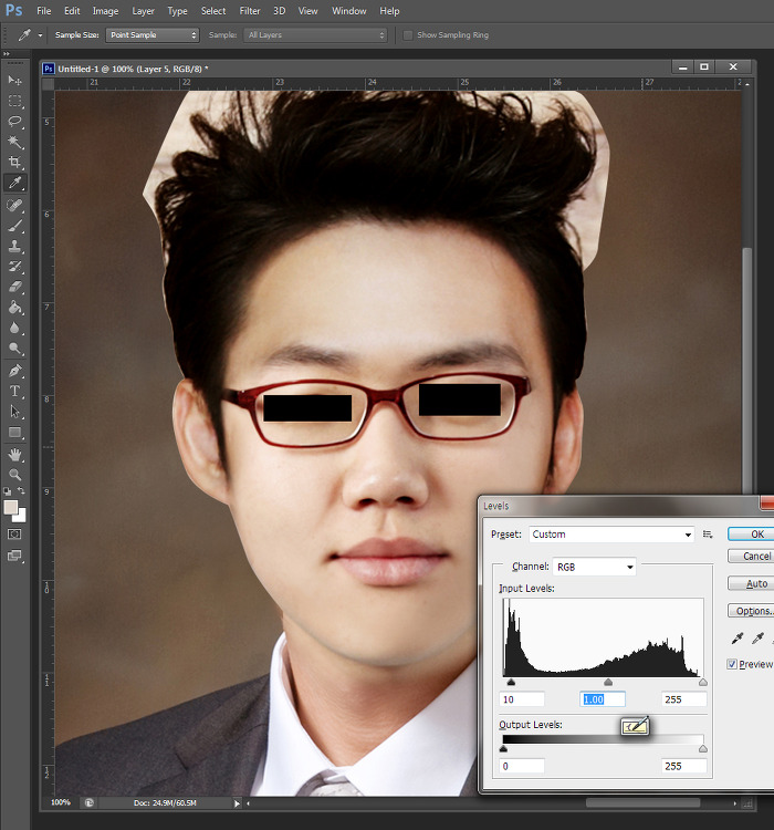 레벨값도 조절해서 머리카락을 선명하게 해준다.
