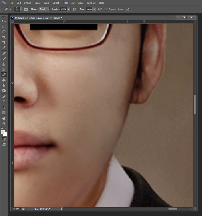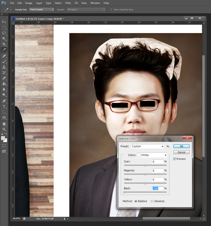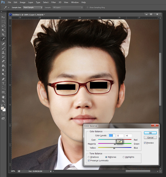 역시 색조절로 정장이미지의 피부색과 니 피부색을 맞춘다.