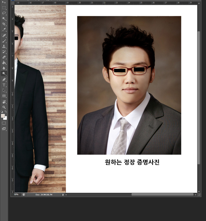 그걸 구글링한 정장 증명사진에 따내서 옮긴다.