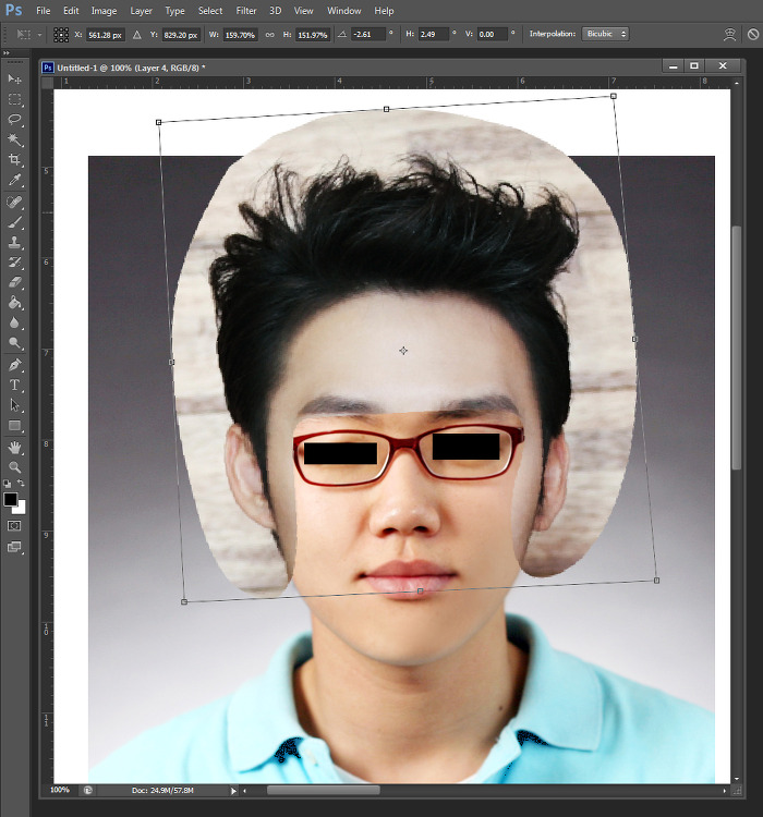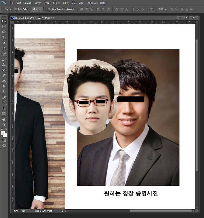 역시 크기 조절로 니 얼굴과 정장 얼굴을 맞춘다.