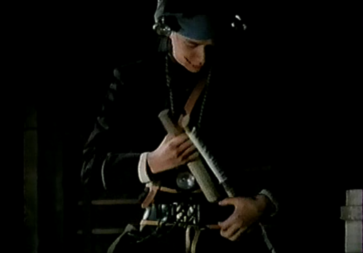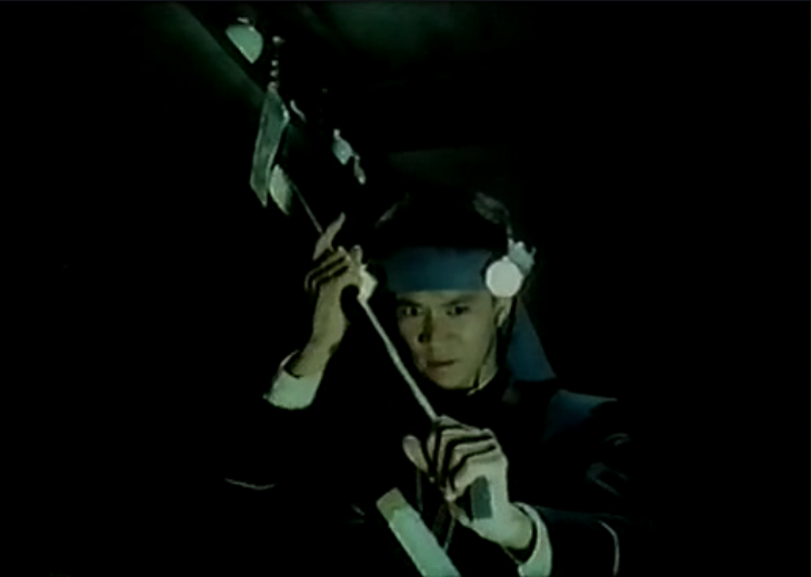 범행하루전 전선을 잘라 마을로 전기를 차단하는 무쓰오