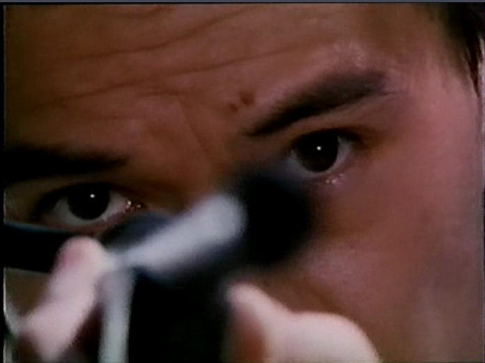 열심히 범행에 앞서 총연습을 하는 무쓰오