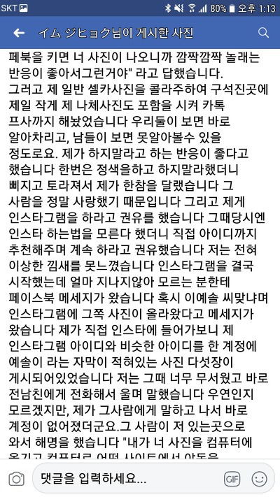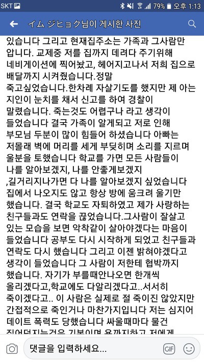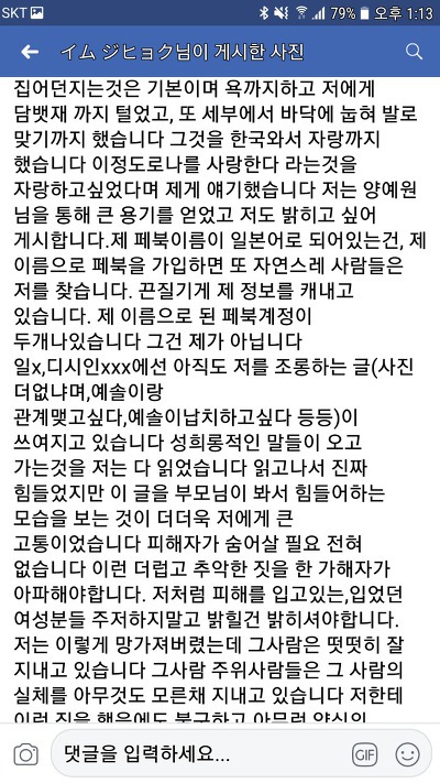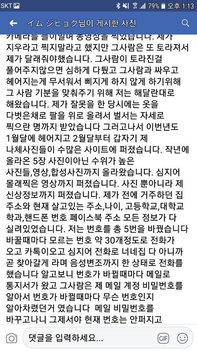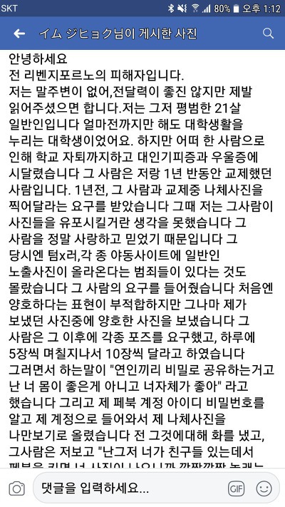 남서울대 ㅇㅇㅅ 페북 심경....리벤지 피해자.... 작성자여자친구_은하|작성시간18.05.18|조회수2,726 목록 댓글 17 글자크기 작게가 글자크기 크게가 ㅜㅠ 다음검색 현재 게시글 추가 기능 열기 북마크 공유하기 신고 센터로 신고 댓글 댓글 17 댓글쓰기 답글쓰기 댓글 리스트 답댓글 작성자재규당한그윈 | 작성시간 18.05.18 검색어좀... 작성자즈까세영 | 작성시간 18.05.18 보지말자 훌리들아...애죽겠다진짜 작성자까대기의 신 | 작성시간 18.05.18 저런놈도 여친이 있는데.. 답댓글 작성자花도일문자 | 작성시간 18.05.18 22 작성자정상인, | 작성시간 18.05.18 카톡보면 둘다 제정신아니네 댓글 전체보기