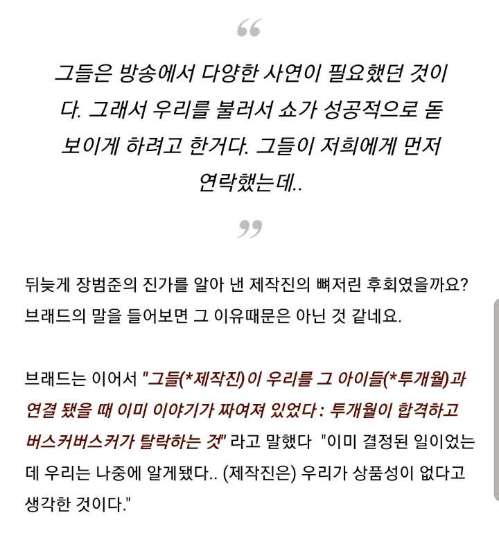 [스크랩] 버스커버스커 멤버가 과거에 언급했던 슈스케 조작 사건 작성자[지옥]이온성액체|작성시간19.11.14|조회수460 목록 댓글 0 글자크기 작게가 글자크기 크게가 * 업로더 유의사항 : 정치, 성혐오, 광고, 분쟁성, 어그로 게시물작성 금지* 댓글러 유의사항 : 정치, 성혐오, 광고, 분쟁성, 어그로 댓글작성 금지 다음검색 스크랩 원문 : 도탁스 (DOTAX) 현재 게시글 추가 기능 열기 북마크 공유하기 신고 센터로 신고 댓글 댓글 0 댓글쓰기 답글쓰기 댓글 리스트