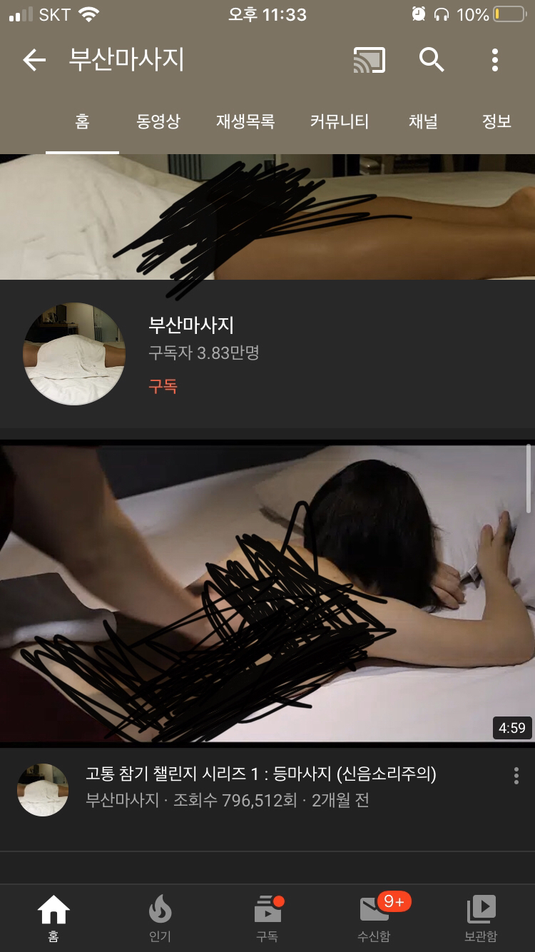 그리고 전문 마사지샵도 아니고 모텔에 여성 데리고 가서 영상 찍는것 같은데 유튜브 이거 제제 해야하는 거 아닌가