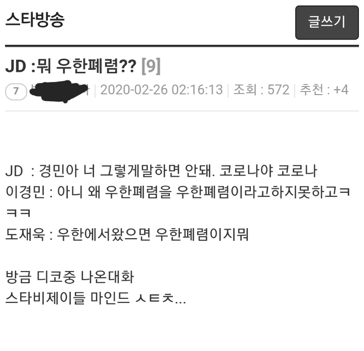 [스크랩] 방금자 스타BJ들 대화. (와이고수펌) 작성자노빠꾸빌런|작성시간20.02.26|조회수551 목록 댓글 1 글자크기 작게가 글자크기 크게가 ㄷㄷ 다음검색 스크랩 원문 : 樂 SOCCER 현재 게시글 추가 기능 열기 북마크 공유하기 신고 센터로 신고 댓글 댓글 1 댓글쓰기 답글쓰기 댓글 리스트 작성자H1GH | 작성시간 20.02.26 아 락싸 댓글 괜히 봄 댓글 전체보기