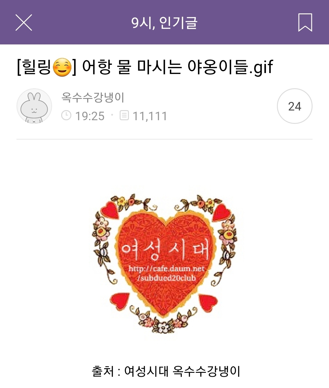 어항 물 마시는 야옹이들 .gif 작성자★ 명 박 ★|작성시간21.05.12|조회수544 목록 댓글 1 글자크기 작게가 글자크기 크게가 다음검색 현재 게시글 추가 기능 열기 북마크 공유하기 신고 센터로 신고 댓글 댓글 1 댓글쓰기 답글쓰기 댓글 리스트 작성자블랙데빌2 | 작성시간 21.05.12 커엽ㅋㅋ 댓글 전체보기