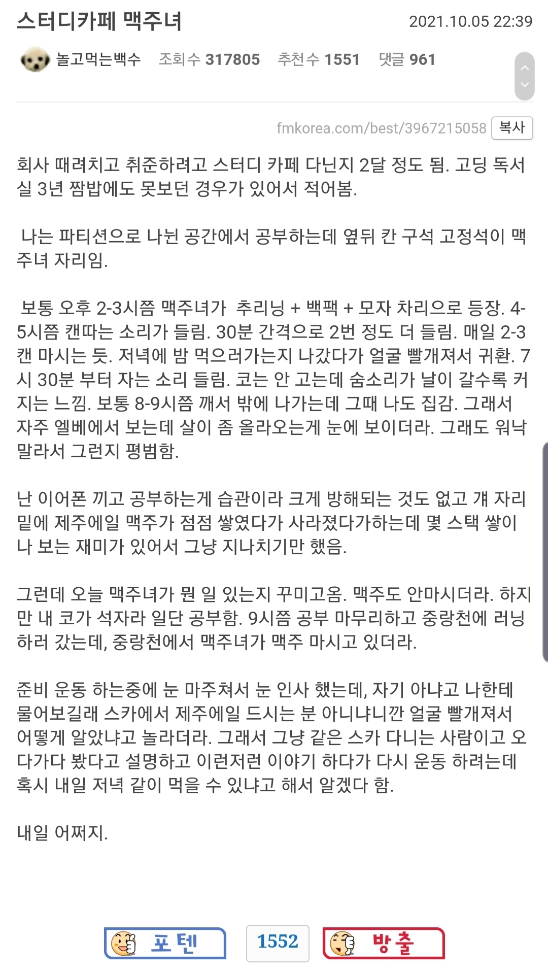 [스크랩] 스터디카페 맥주녀 작성자[지옥][지옥]이온성액체[지옥]|작성시간21.10.06|조회수617 목록 댓글 2 글자크기 작게가 글자크기 크게가 다음검색 스크랩 원문 : 도탁스 (DOTAX) 현재 게시글 추가 기능 열기 북마크 공유하기 신고 센터로 신고 댓글 댓글 2 댓글쓰기 답글쓰기 댓글 리스트 작성자[지옥][지옥]이온성액체[지옥] 작성자 본인 여부 작성자 | 작성시간 21.10.06 시발 작성자향가향가 | 작성시간 21.10.06 주작 댓글 전체보기