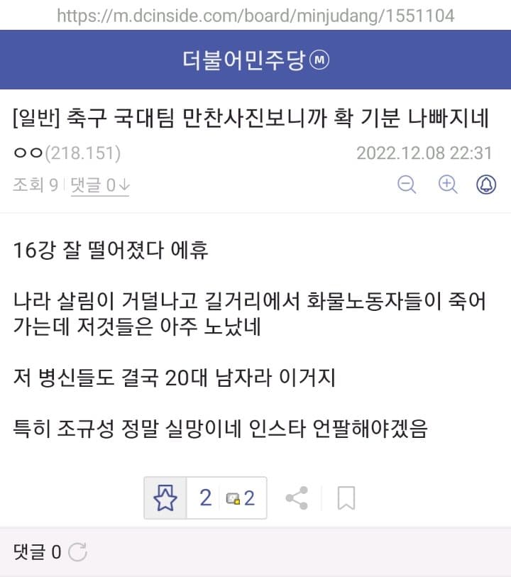 실시간 민주당갤 반응ㅋㅋㅋㅋㅋ.jpg 작성자Allegory2|작성시간22.12.09|조회수691 목록 댓글 4 글자크기 작게가 글자크기 크게가 ㅋㅋㅋㅋㅋ 다음검색 현재 게시글 추가 기능 열기 북마크 공유하기 신고 센터로 신고 댓글 댓글 4 댓글쓰기 답글쓰기 댓글 리스트 작성자떠블쎆쓰501 | 작성시간 22.12.09 제정신이아님ㅋ 작성자모닝클 미라 | 작성시간 22.12.09 짜빠구리 사진은 ㅅㅂ ㅋㅋㅋ 작성자제25보병사단 | 작성시간 22.12.09 훠훠 소늉민 소늉민 어디쒀? 작성자만족고대 | 작성시간 22.12.09 갤 이름 바꿔야하는거 아님? 댓글 전체보기