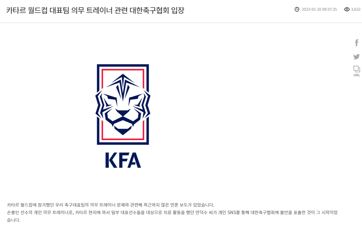 7. 손흥민이 카타르 오면서 안덕수와 동행함 -> 축협은 다른 선수들도 원할 경우 안덕수에게 치료 받는 것 수용