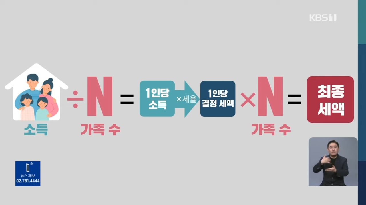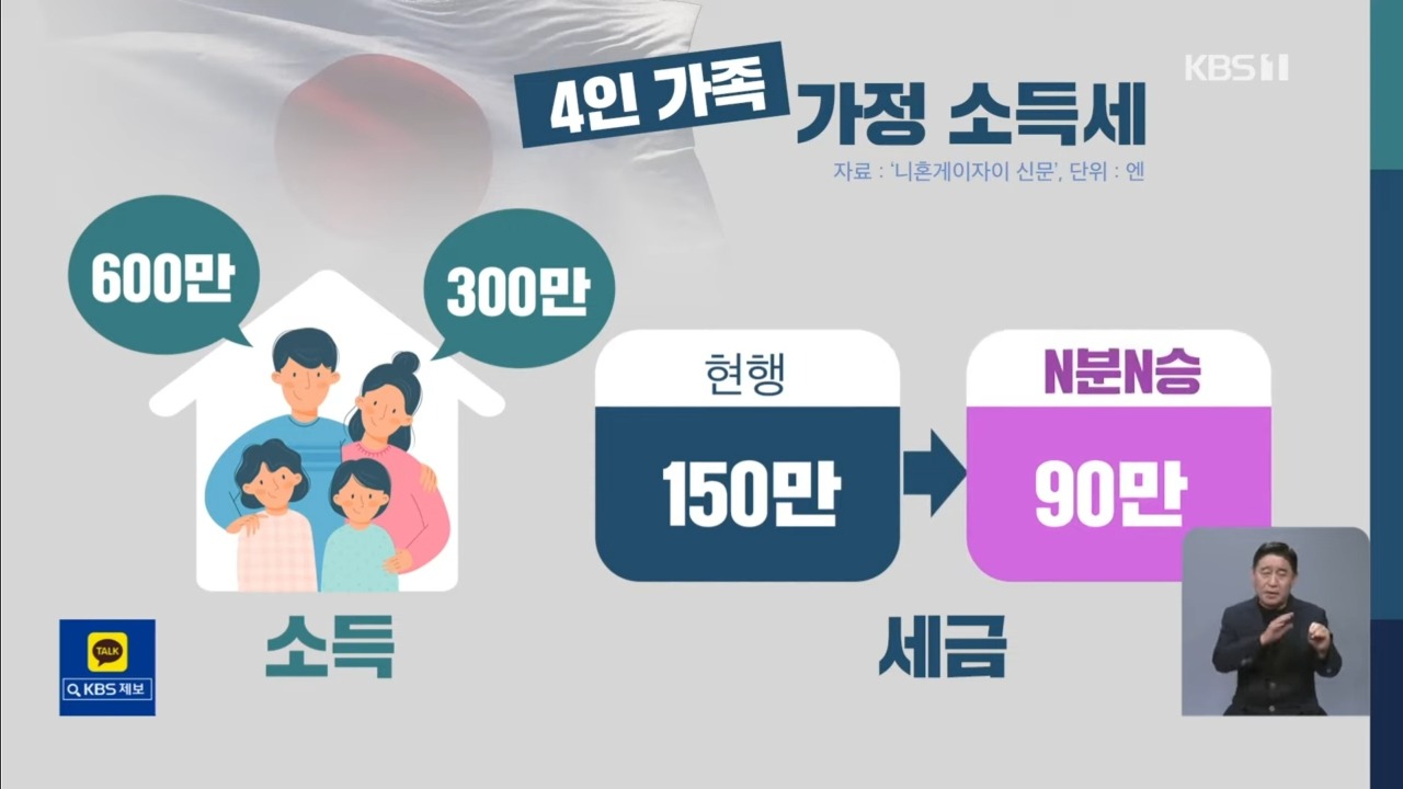일본의 경우 소득세를 개인에 매겼는데 이를 가구당으로 바꾸고 인원수로 나온 평균값을 세금으로 매기겠다는 것