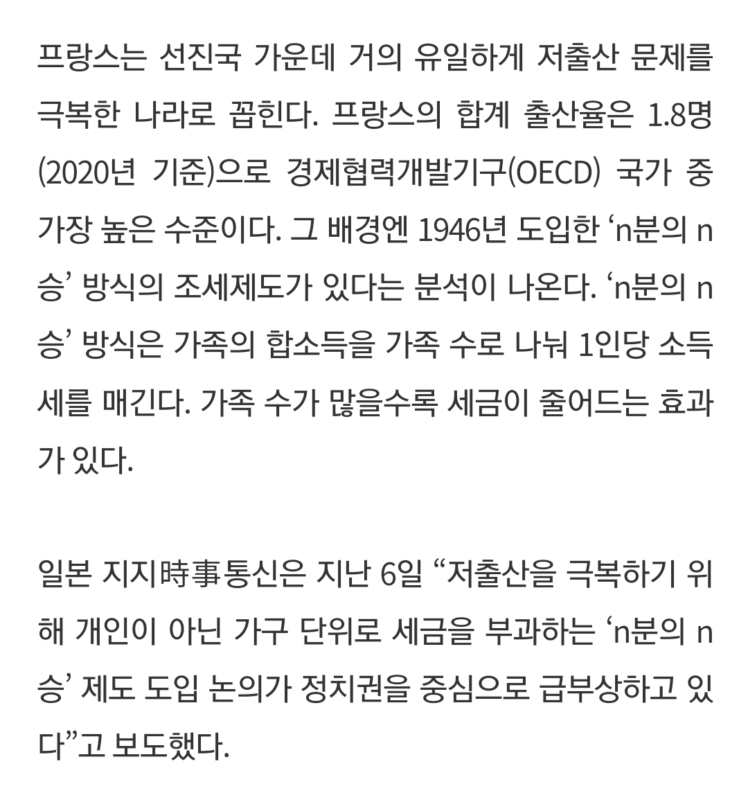 최근 자민당에서 프랑스의 'N분 N승'방식 세제개편안을 들고나옴