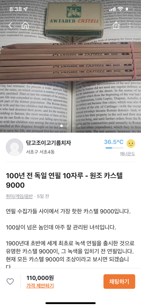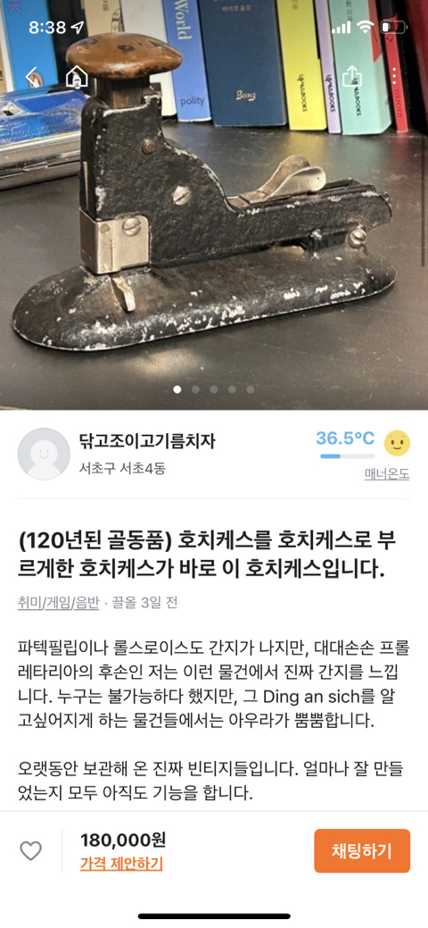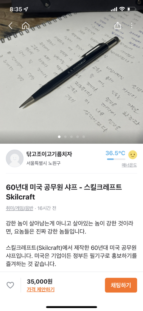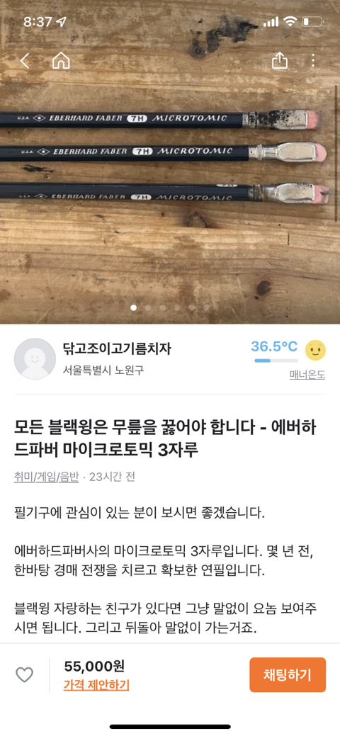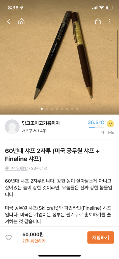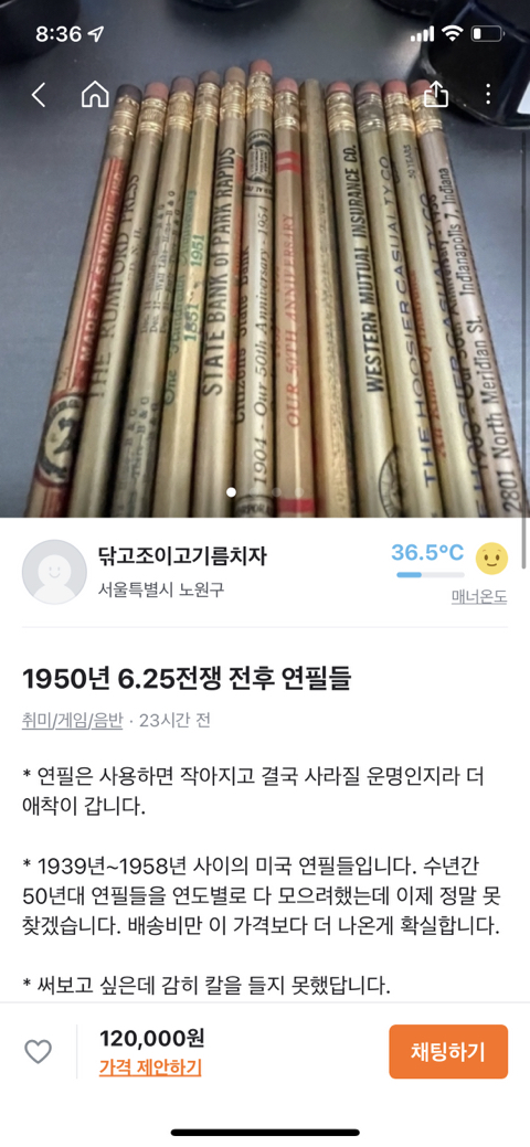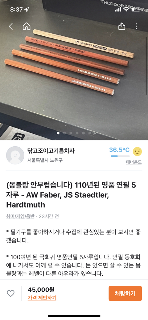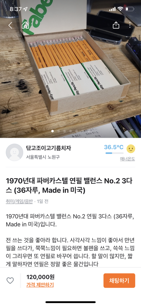 [스크랩] 당근마켓에 올라온 엘리자베스 여왕이 선물한 만년필 (ft. 5,510만원) 작성자별똥별|작성시간23.10.18|조회수433 목록 댓글 0 글자크기 작게가 글자크기 크게가 출처 : 여성시대 너에게는 내가 잘 어울린다이 외에도 이 판매자가 판매중인 상품들 보면지독한 빈티지 필기구 덕후로 보임(+) 고대 유물까지 모으나 봄도대체.. 뭐하는 분일까…문제시 삭제함.. 다음검색 스크랩 원문 : *여성시대* 차분한 20대들의 알흠다운 공간 현재 게시글 추가 기능 열기 북마크 공유하기 신고 센터로 신고 댓글 댓글 0 댓글쓰기 답글쓰기 댓글 리스트