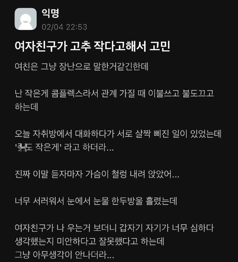 [스크랩] 여친이 고추 작다고 해서 고민인 남자 작성자불꽃남자 정대만|작성시간24.02.06|조회수590 목록 댓글 4 글자크기 작게가 글자크기 크게가 다음검색 스크랩 원문 : 이종격투기 현재 게시글 추가 기능 열기 북마크 공유하기 신고 센터로 신고 댓글 댓글 4 댓글쓰기 답글쓰기 댓글 리스트 작성자슈우욱 | 작성시간 24.02.06 ㅠㅠ 작성자송은이 | 작성시간 24.02.06 얼마나작길래 작성자동훈뷘 | 작성시간 24.02.06 ㅜㅡㅜ😭😭...근데 작으면 걍 ㅂ ㅏ텀하시는게 ㄴ ㅏ을듯..😭 작성자이민용 | 작성시간 24.02.06 와씨 전혀 공감이 안되네 하하하 댓글 전체보기