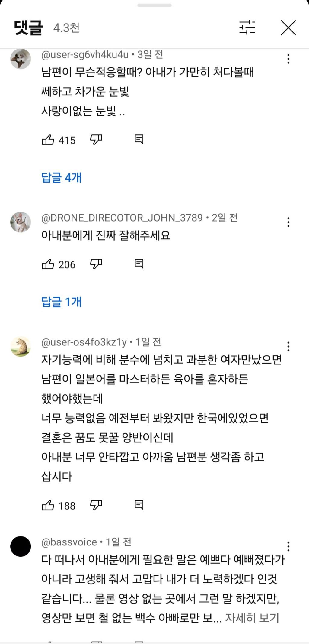 아내분은 일본에서 직장 다니며 아이 2명 키우고 있고 남편분이 8년간 일본에 있으면서도 일본어가
