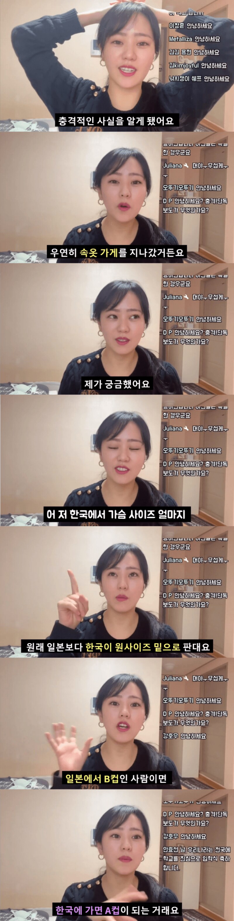 한국 여자들 에메필이나 일본 여행가서 브래지어 사이즈 재는 영상 많은데 가보면 죄 e컵 f컵