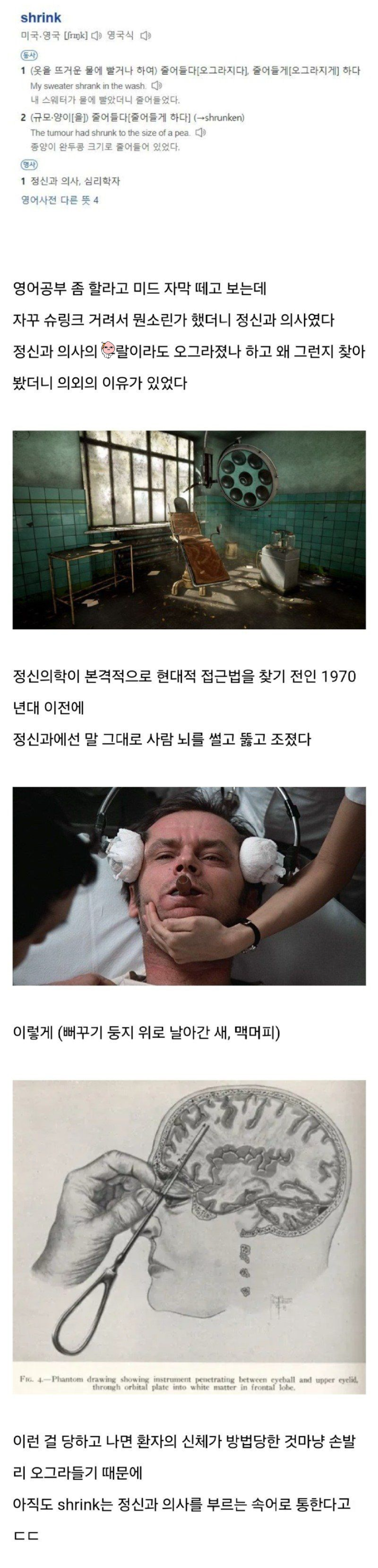 정신과 의사가 영어로 shrink인 이유 작성자행운을 빌어줘|작성시간24.05.31|조회수510 목록 댓글 2 글자크기 작게가 글자크기 크게가 다음검색 현재 게시글 추가 기능 열기 북마크 공유하기 신고 센터로 신고 댓글 댓글 2 댓글쓰기 답글쓰기 댓글 리스트 작성자코린이가즈아☆ | 작성시간 24.05.31 와 ㅆㅂ 그림 보기만해도 징그럽네 작성자조땜 | 작성시간 24.05.31 워매 댓글 전체보기