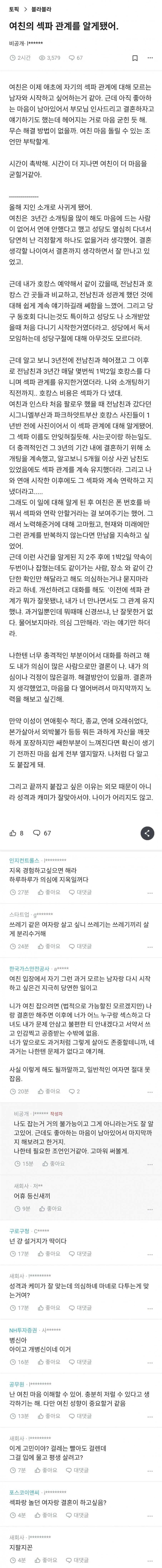 헌데 사귀고 난 후에 섹파를 가진다는건 현재 본인이 남자로서 매력이 아예 없다는 것이고, 남자로서 매력이 없어서 섹파를 가져야 할 정도면 여자는 남자 붙잡지 말고 헤어졌어야 하는 게 기본 상식임.