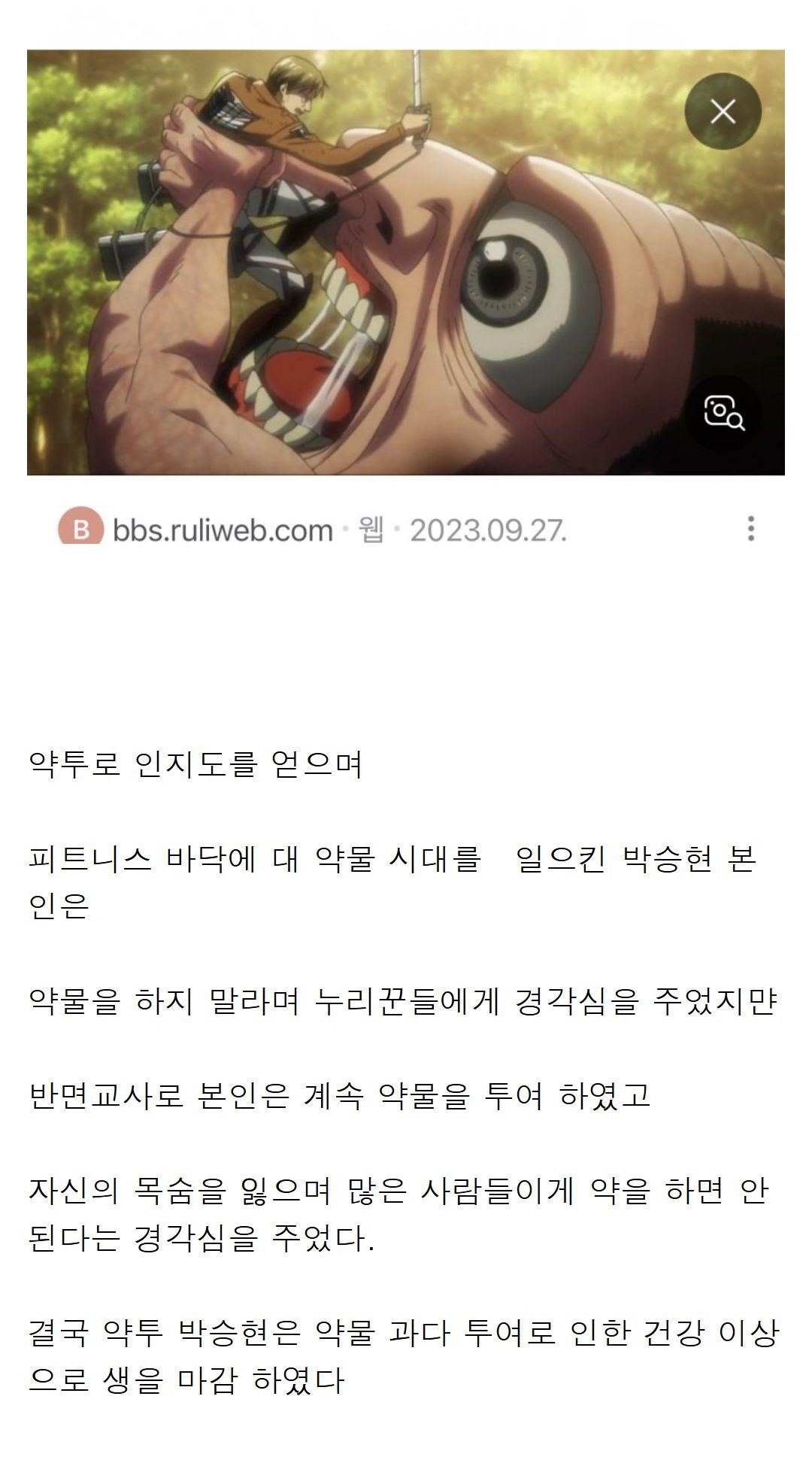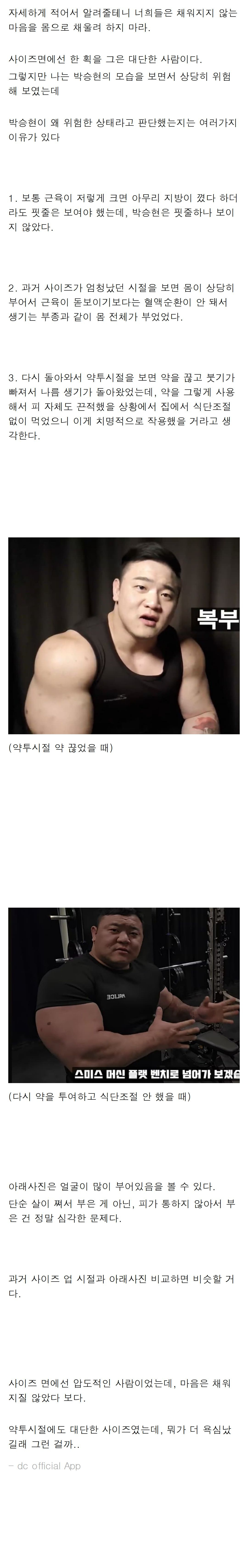 잘 모르는 사람들도 있을텐데 6년전 이사람이 "약투 운동" 이라 해서 불법로이드약물의 위험성을 고발하여 공중파에도 나옴