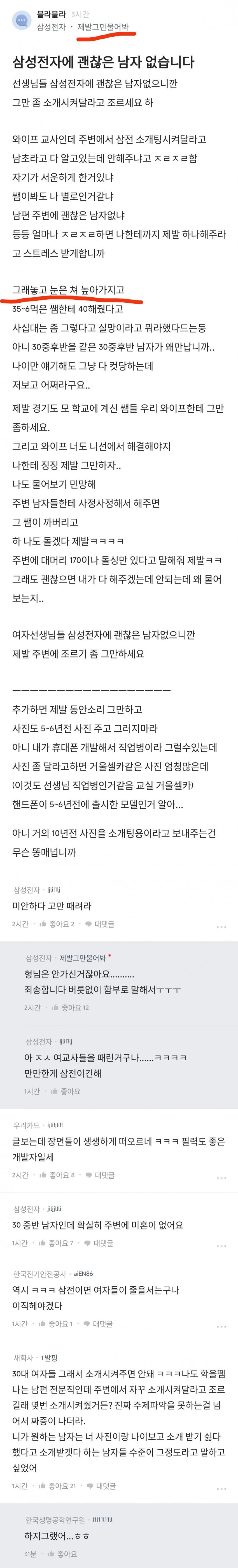 다른 업종은 솔로여도 안그러는데 교사 간호사는 소개할 사람 더 이상 없다하면 왜 이리 원망을 하냐 진절머리 남