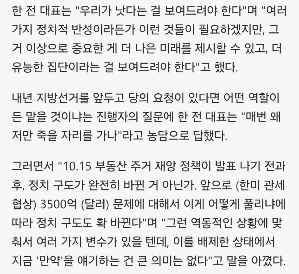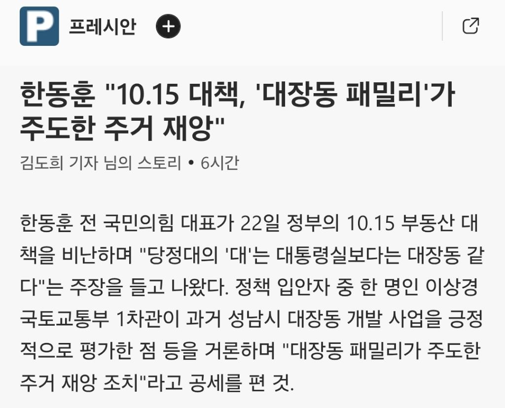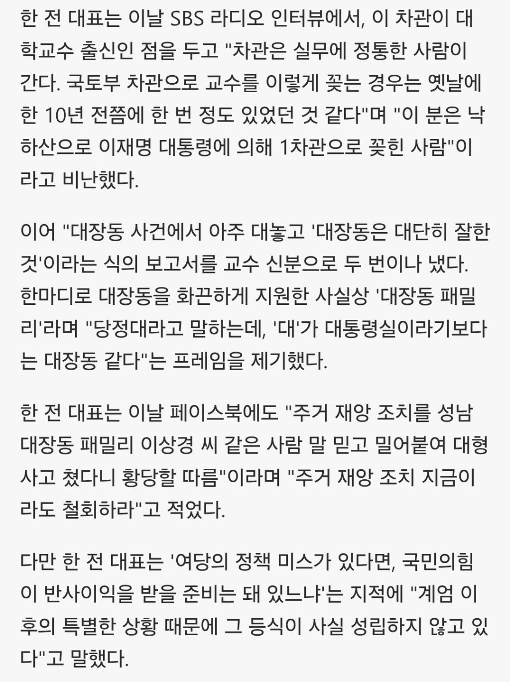 [스크랩] 한동훈 "10.15 대책, '대장동 패밀리'가 주도한 주거 재앙" 작성자노빠꾸사딸라|작성시간25.10.23|조회수89 목록 댓글 0 글자크기 작게가 글자크기 크게가 https://www.msn.com/ko-kr/news/other/%ED%95%9C%EB%8F%99%ED%9B%88-10-15-%EB%8C%80%EC%B1%85-%EB%8C%80%EC%9E%A5%EB%8F%99-%ED%8C%A8%EB%B0%80%EB%A6%AC-%EA%B0%80-%EC%A3%BC%EB%8F%84%ED%95%9C-%EC%A3%BC%EA%B1%B0-%EC%9E%AC%EC%95%99/ar-AA1OXcbs?ocid=socialshare한동훈 "10.15 대책, '대장동 패밀리'가 주도한 주거 재앙"한동훈 전 국민의힘 대표가 22일 정부의 10.15 부동산 대책을 비난하며 "당정대의 '대'는 대통령실보다는 대장동 같다"는 주장을 들고 나왔다. 정책 입안자 중 한 명인 이상경 국토교통부 1차관이 www.msn.com 다음검색 스크랩 원문 : 이종격투기 현재 게시글 추가 기능 열기 북마크 공유하기 신고 센터로 신고 댓글 댓글 0 댓글쓰기 답글쓰기 댓글 리스트