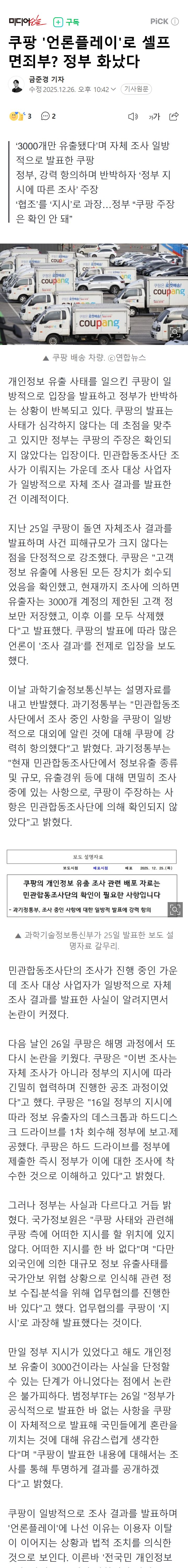 쿠팡 '언론플레이'로 셀프 면죄부? 정부 화났다 작성자선배녀(안웃게)|작성시간25.12.26|조회수109 목록 댓글 0 글자크기 작게가 글자크기 크게가 다음검색 현재 게시글 추가 기능 열기 북마크 공유하기 신고 센터로 신고 댓글 댓글 0 댓글쓰기 답글쓰기 댓글 리스트