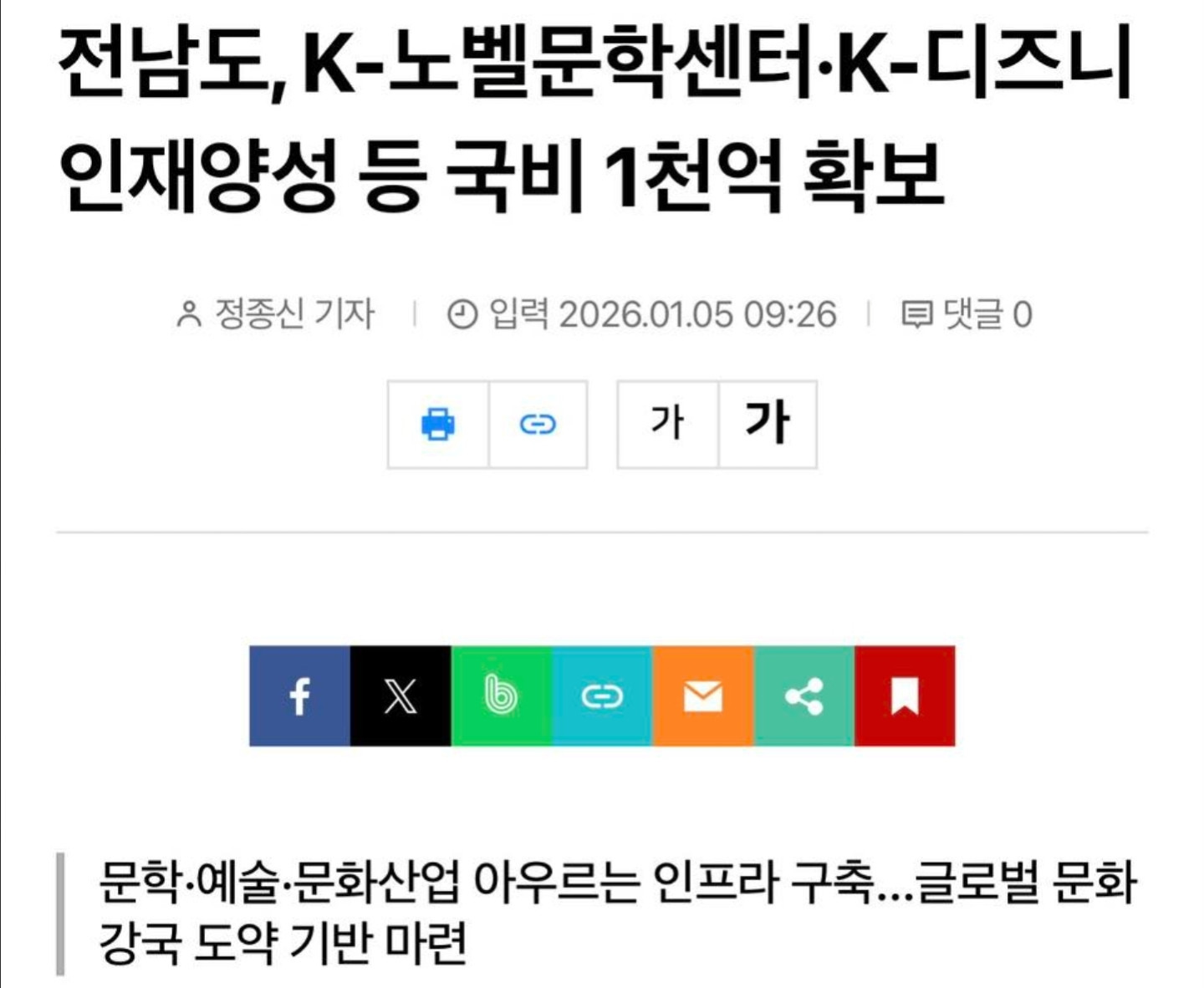 전라남도는 K-노벨문학센터 건립과 K-디즈니 인재양성