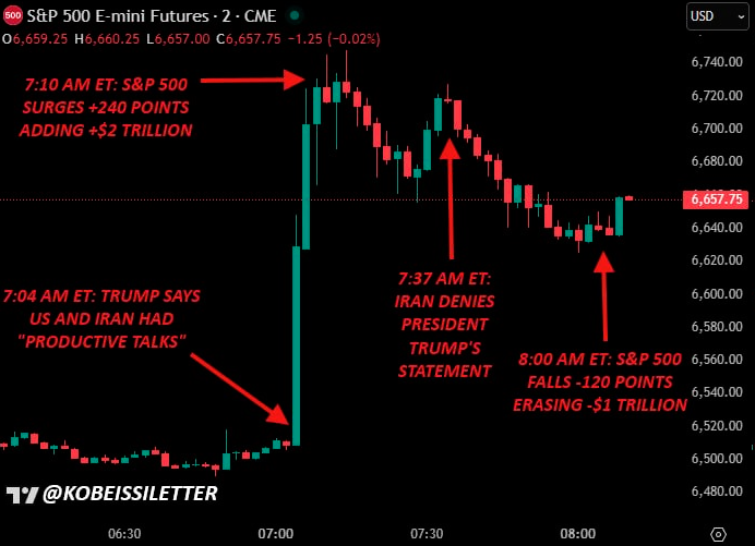 🇺🇸📈📉 오늘 오전 7시 4분(미국 동부시간), 트럼프 대통령은 이란 전쟁을 끝내기 위해 "미국과 이란이 생산적인 논의를 했다"고 말했습니다.