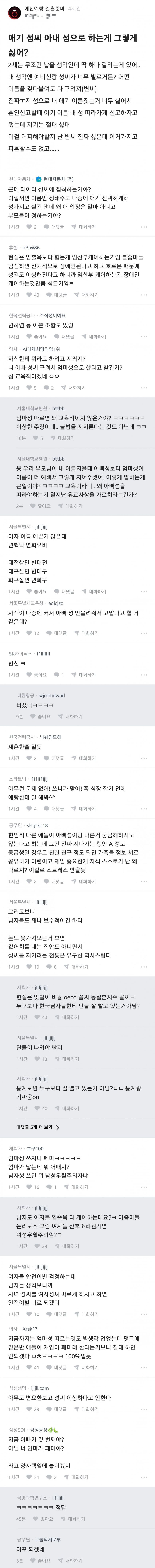 애기 성씨 아내 성으로 하는게 그렇게 싫어?? 작성자선배녀(안웃게)|작성시간26.03.28|조회수239 목록 댓글 2 글자크기 작게가 글자크기 크게가 다음검색 현재 게시글 추가 기능 열기 북마크 공유하기 신고 센터로 신고 댓글 댓글 2 댓글쓰기 답글쓰기 댓글 리스트 작성자nacci84 | 작성시간 26.03.28 피지배 남성에게 가장 쓸모없는게 성씨인데....성씨를 뺏길때 피지배 남성들은 자유를 얻을것이다. 작성자posthoolis | 작성시간 26.03.30 변화궄ㅋㅋㅋㅋㅋㅋㅋㅋㅋㅋㅋㅋㅋㅋㅋㅋㅋ 댓글 전체보기