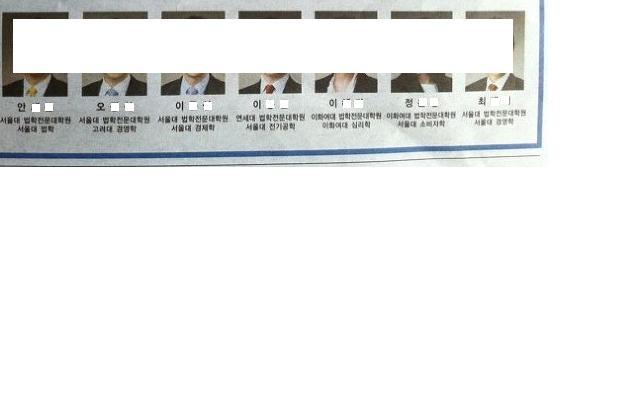 서울대 법전원 8명 (학부 : 서울대 4, 연세대 1, 고려대 1, KAIST 1, 경북대 1)