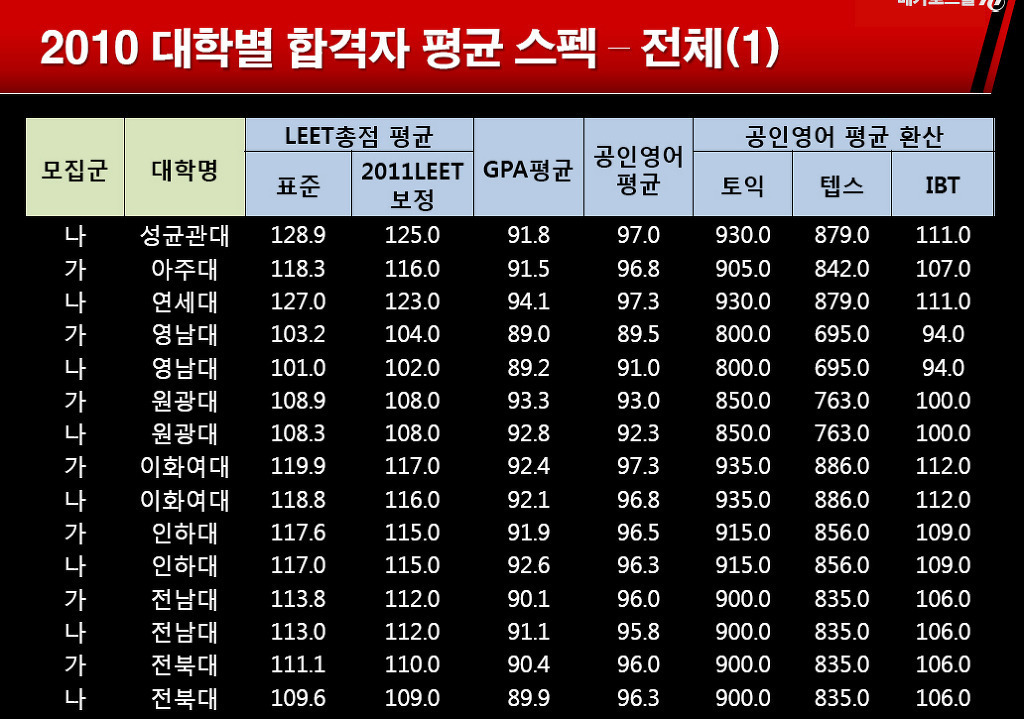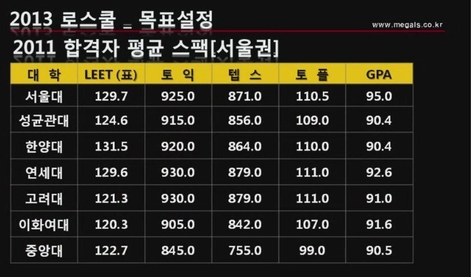 로스쿨 4기 입시결과 : 서울대 >= 연대 > 한양대 > 고대 = 성대 > 이대 > 중앙대