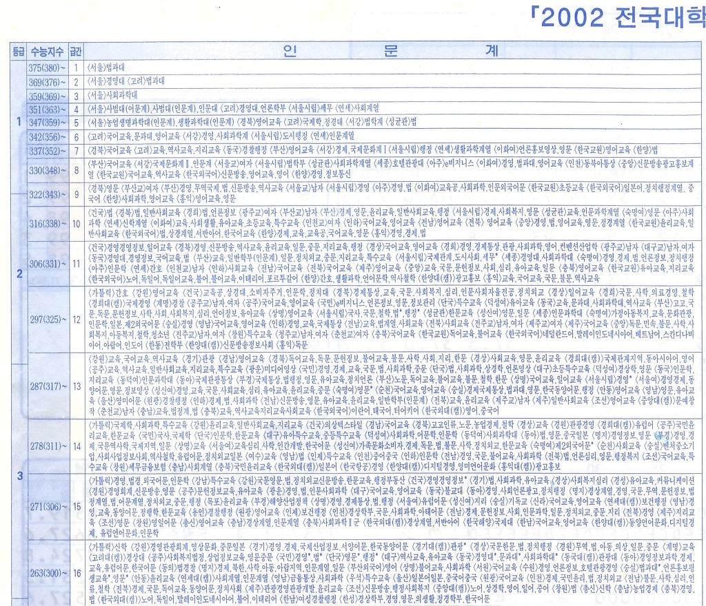 작성자대학갈대 작성시간 19.05.01 맞는 자료입니다.서울법 다음으로 서울경영.고법 고민하던시대이구요. 연대는 경영이 사회계열로 된것이 치명적 실수였죠.